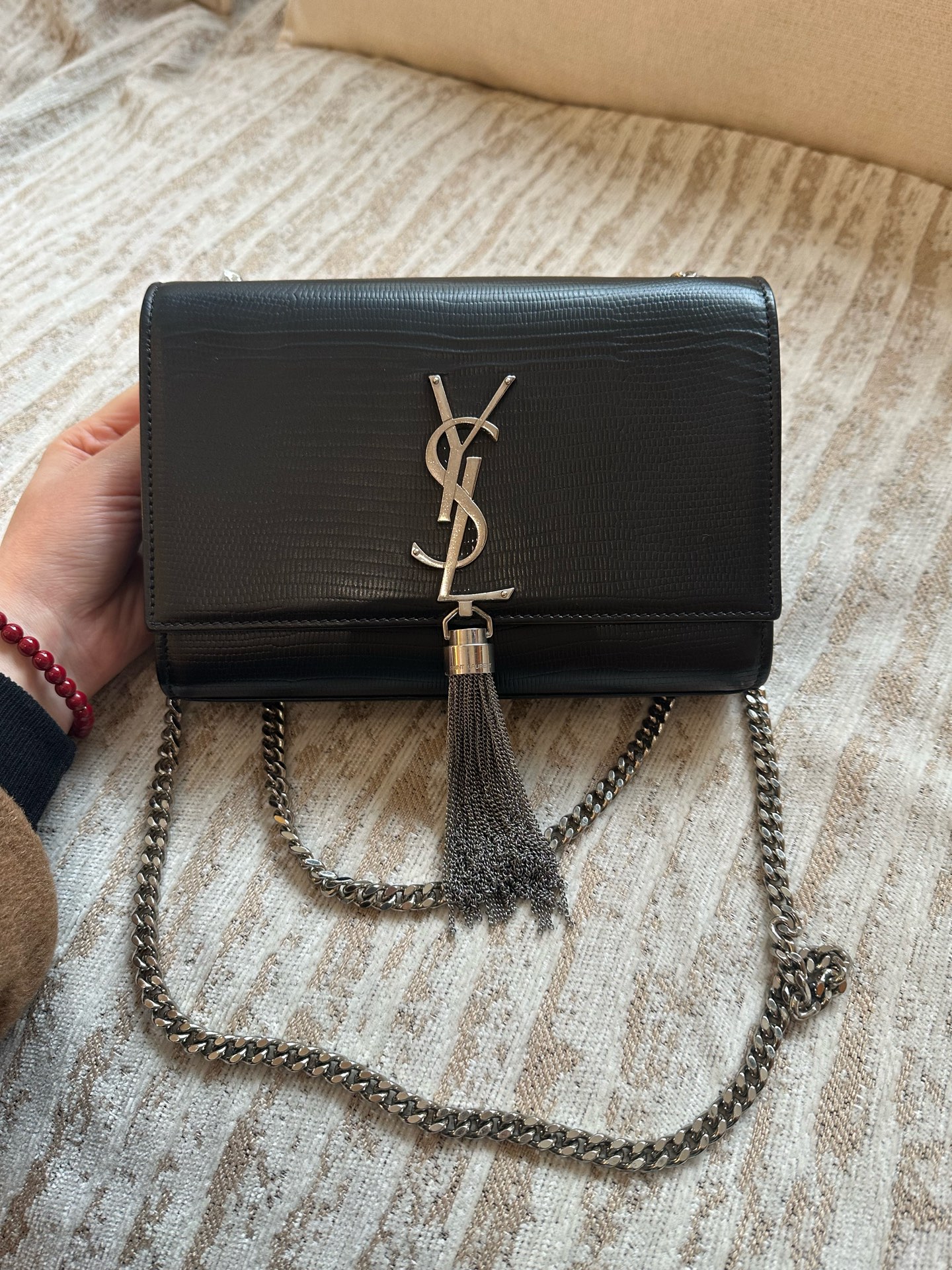 YSL Kate Black Silver Chain Bag
